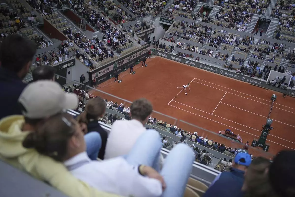 Spectators watch Jessica Pegula of the U.S. playing Romania's Anca Todoni during their first round match of the French Tennis Open, at the Roland-Garros stadium, in Paris, Tuesday, May 27, 2025. (AP Photo/Aurelien Morissard)