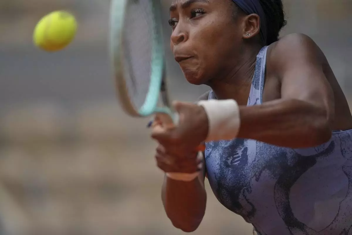 Coco Gauff of the U.S. returns the ball to Australia's Olivia Gadecki during their first round match of the French Tennis Open, at the Roland-Garros stadium, in Paris, Tuesday, May 27, 2025. (AP Photo/Thibault Camus)