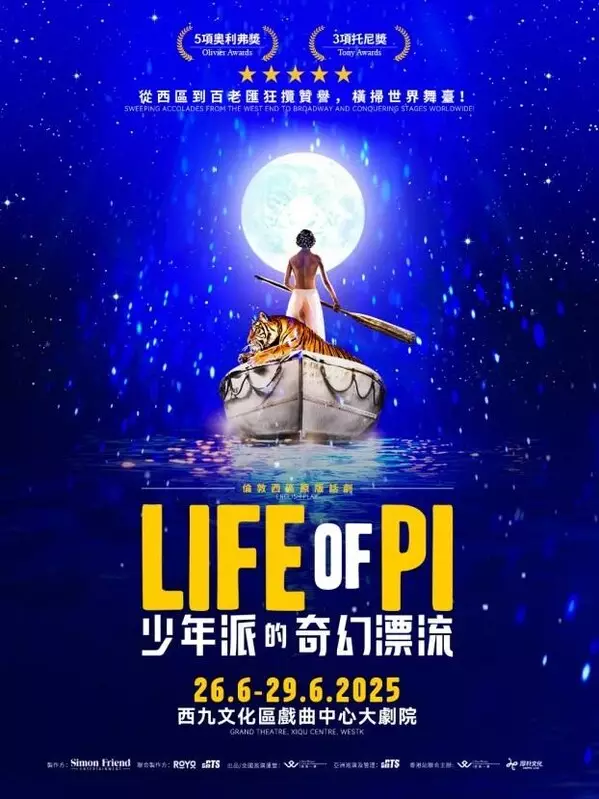 HONG KONG, May 26, 2025 /PRNewswire/ --The original London West End production of *Life of Pi*, which has garnered five Laurence Olivier Awards and three Tony Awards, will be presented in Hong Kong for the first time by China Foreign Cultural Affairs Group Ltd. The performances will take place at the Grand Theatre of the West Kowloon Cultural District (WKCD) from June 26 to 29. Audiences can now purchase tickets for this Hong Kong engagement through various platforms, with prices starting at a limited $288, allowing them to experience this 'theatre miracle' that transcends the pages of the book and the screen!