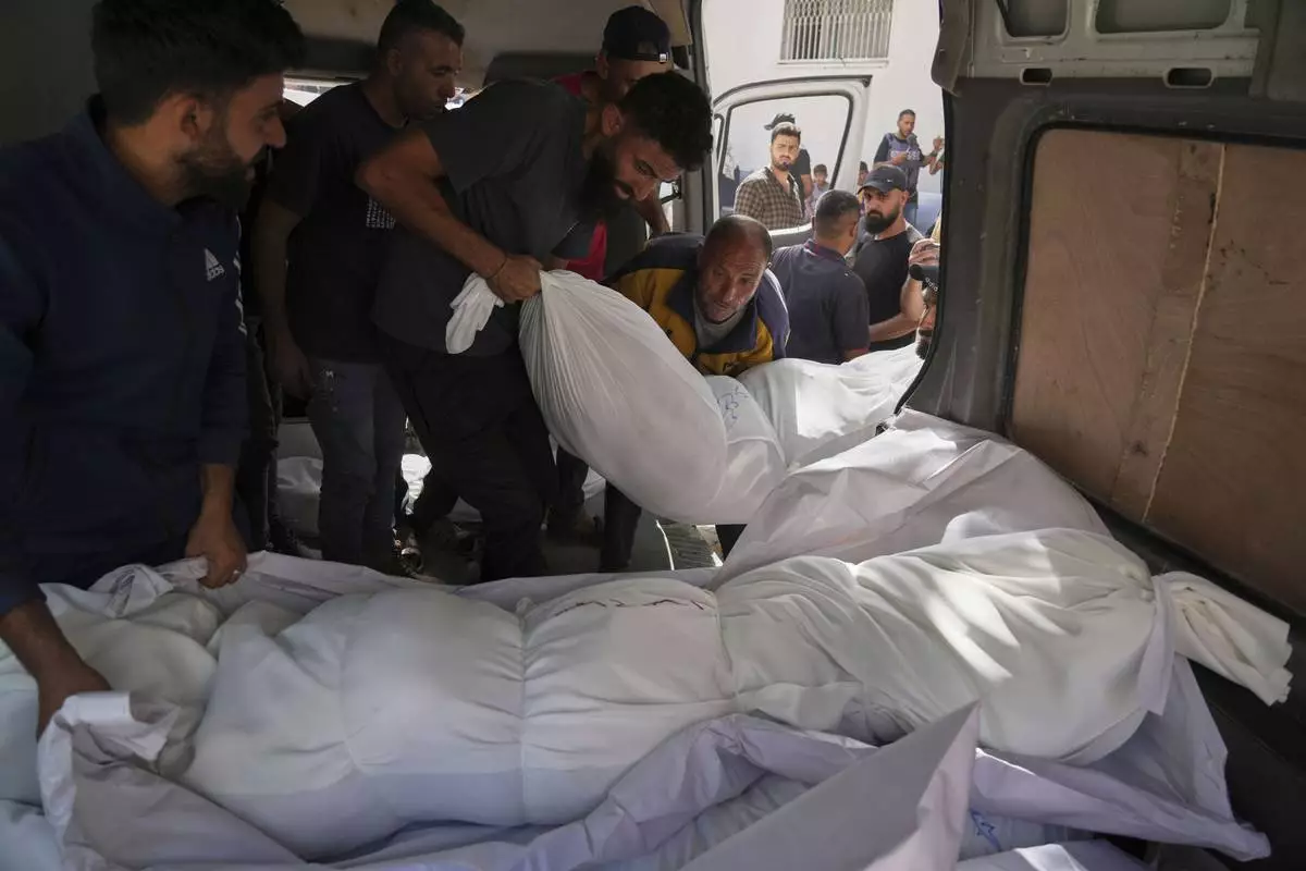 Bodies of Palestinians killed in the Israeli army airstrikes are brought to Al-Shifa Hospital in Gaza City, Monday, May 26, 2025. (AP Photo/Jehad Alshrafi)