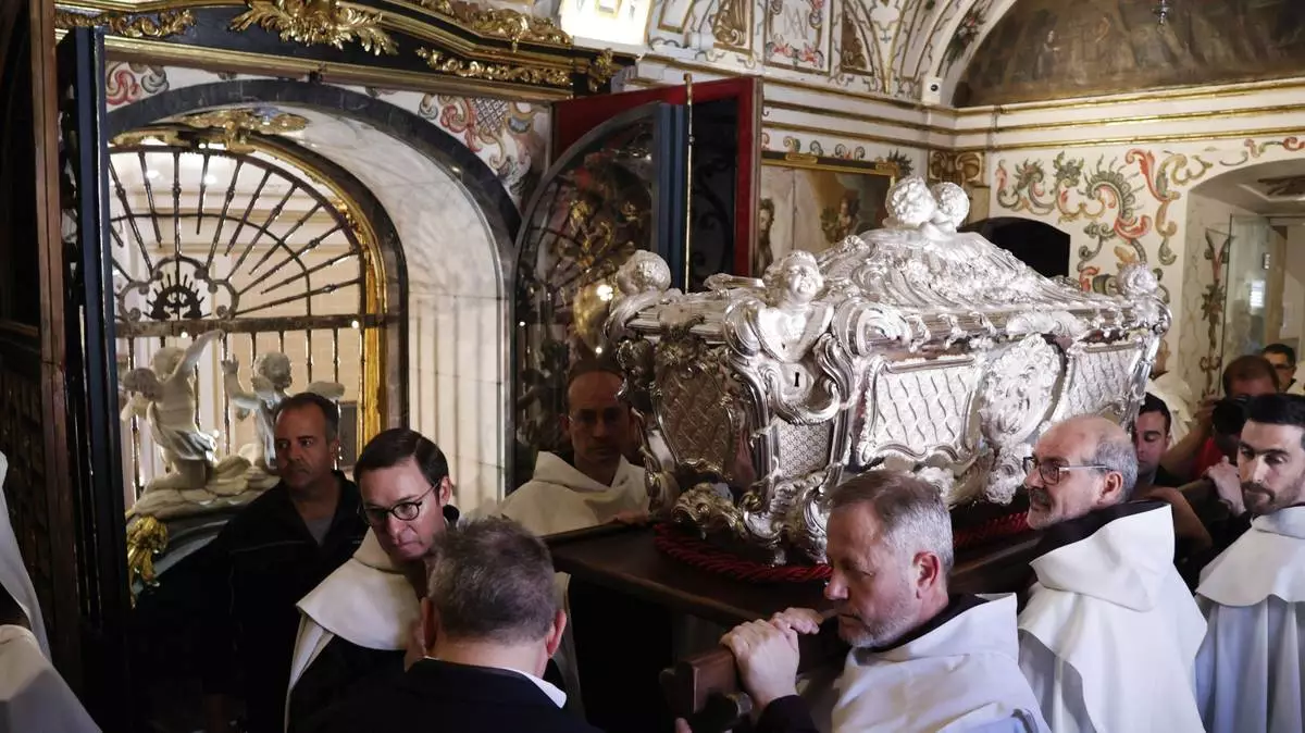 On Monday morning, the casket of the saint who died in 1582 was resealed and carried through the town streets, with pilgrims following the procession. It is unclear how many years — or decades — will pass before the church once again makes St. Teresa's remains visible to the public.