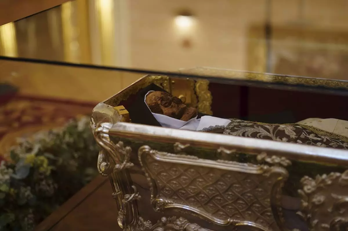 The casket that holds the saint's remains is barely 1.3 meters (4 feet) long.