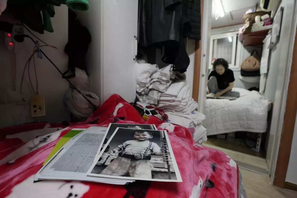 FILE - Choi Young-ja holds a photo of her son, who went missing in 1975, in her motel room in Seoul, South Korea, March 5, 2024. (AP Photo/Ahn Young-joon, File)