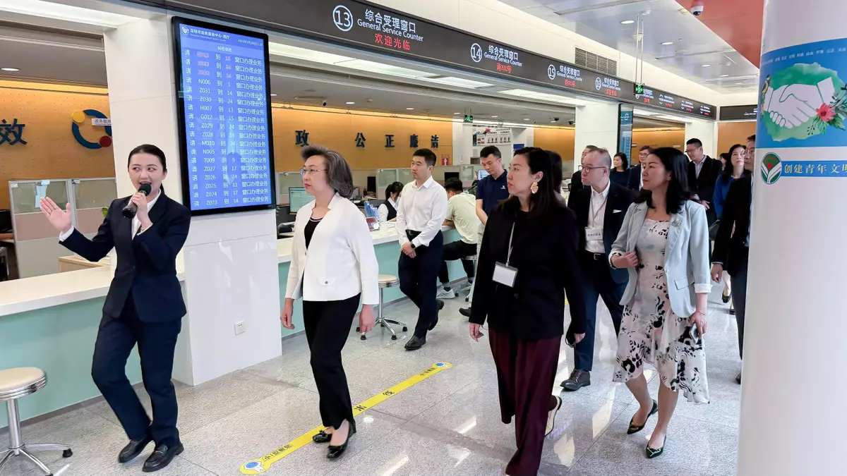 Members then visited the Shenzhen Government Service Center and received a briefing by its representatives on how AI is used for providing various public services. During the visit, Members observed the services provided by the Center, and learned about the operation of the platform for addressing public concerns.
