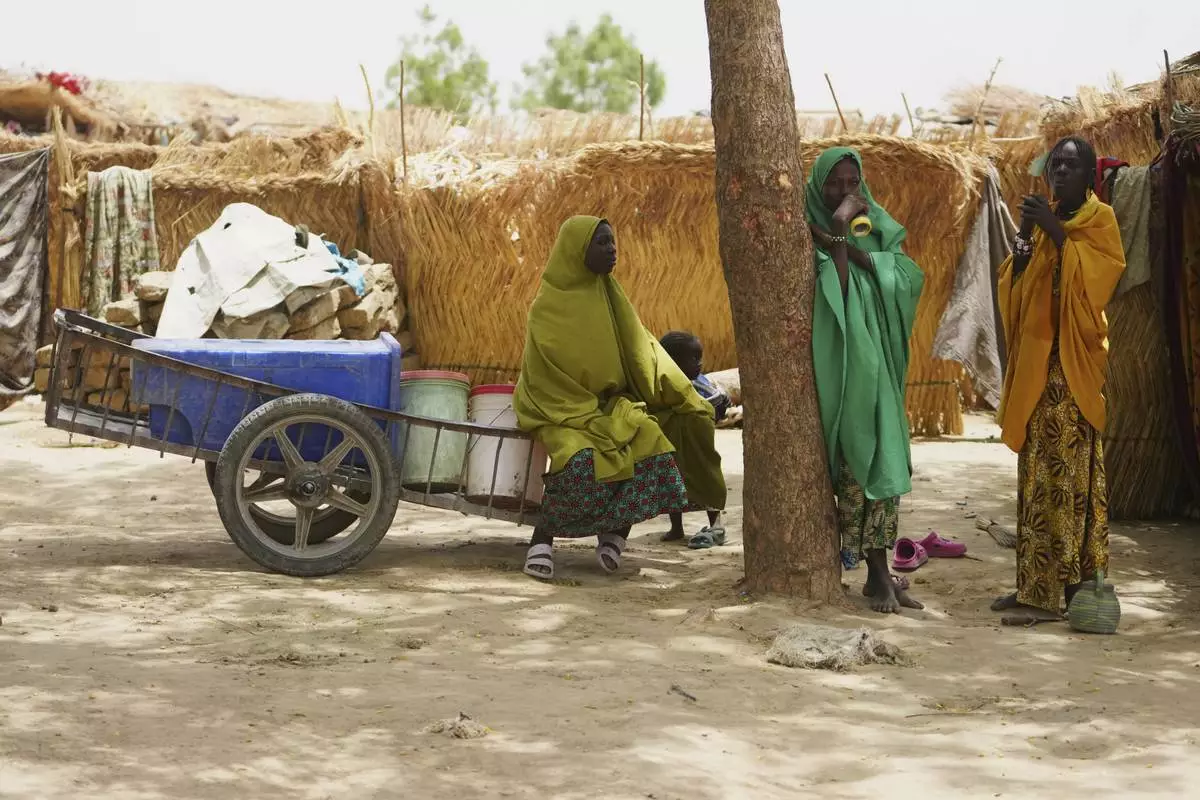 Women displaced by Boko haram attacks are seen outside there camp in Dikwa, north east Nigeria, April 29, 2025. (AP Photo/Sunday Alamba)