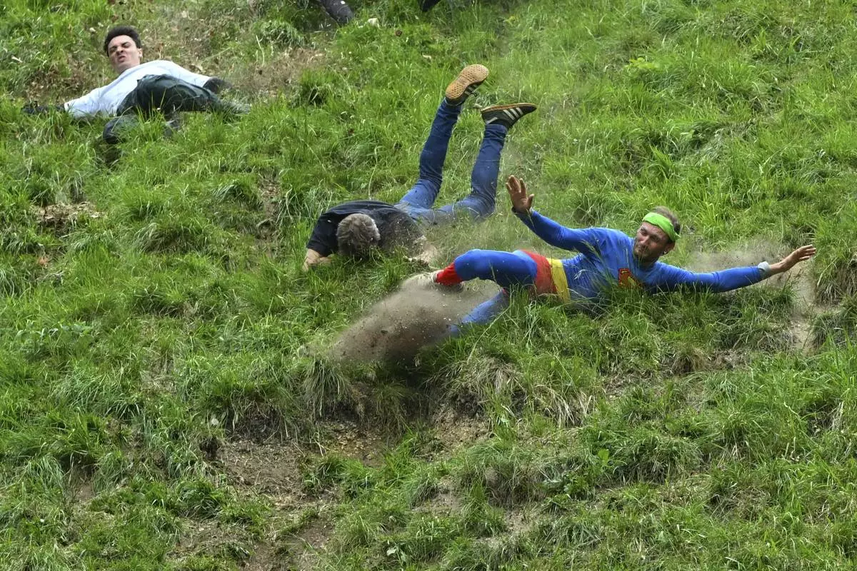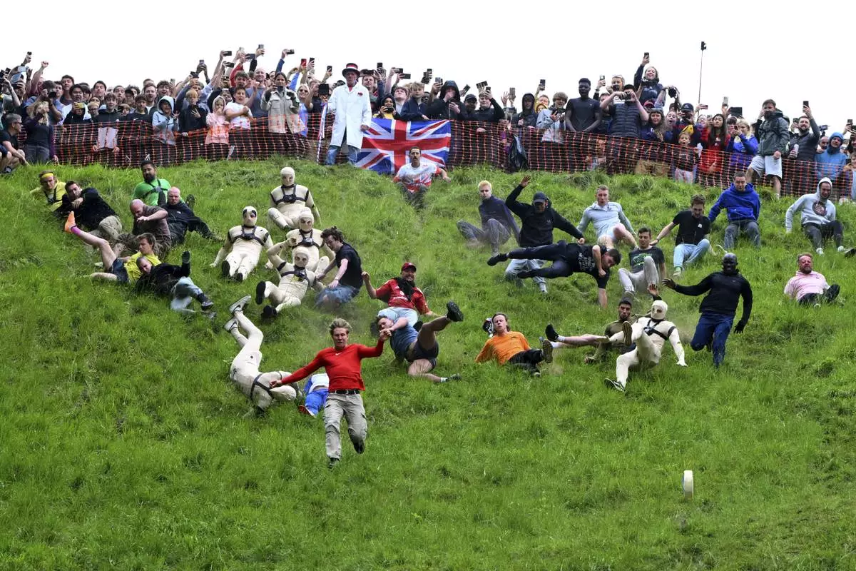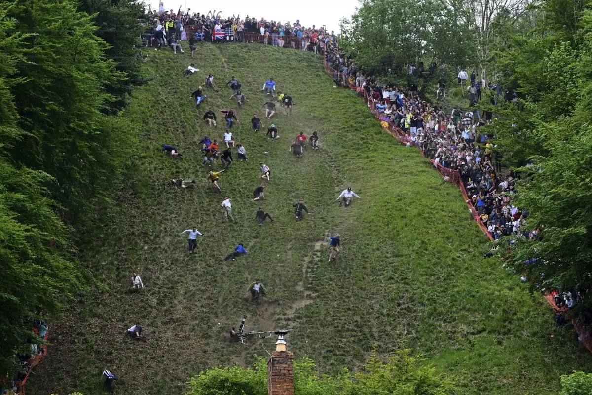 The contest, traditionally held on the late-May public holiday near Gloucester, about 90 miles (145 kilometers) west of London, dates back at least two centuries, maybe longer. It’s attended by thousands, who pack the woods flanking the hill or take cover behind fences at the bottom, as competitors from around the world risk serious injury in the hope of glory.