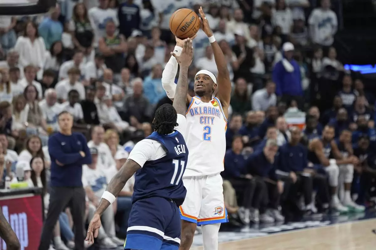 Gilgeous-Alexander went 12 for 14 from the free-throw line, making a pair with 6.1 seconds left to stretch the lead back to three. The Thunder fouled Anthony Edwards with 3.5 seconds to go, and his intentional miss of the second free throw to try to keep possession was tracked down in the corner by Gilgeous-Alexander and flung out of bounds to drain the clock.