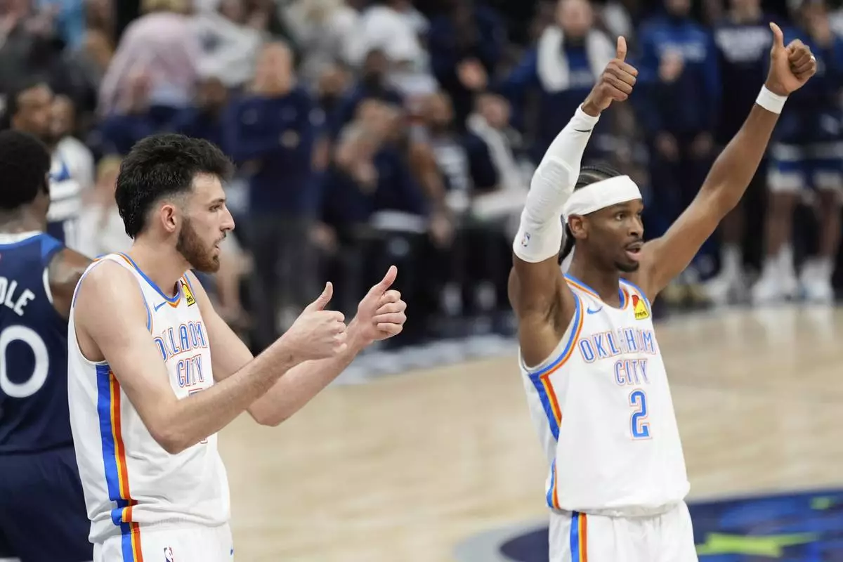 MINNEAPOLIS (AP) — With Oklahoma City clutching a four-point lead, Shai Gilgeous-Alexander drove into the lane and smacked into triple coverage — doing the splits as he stopped and desperately tried to find a safe place for the ball.