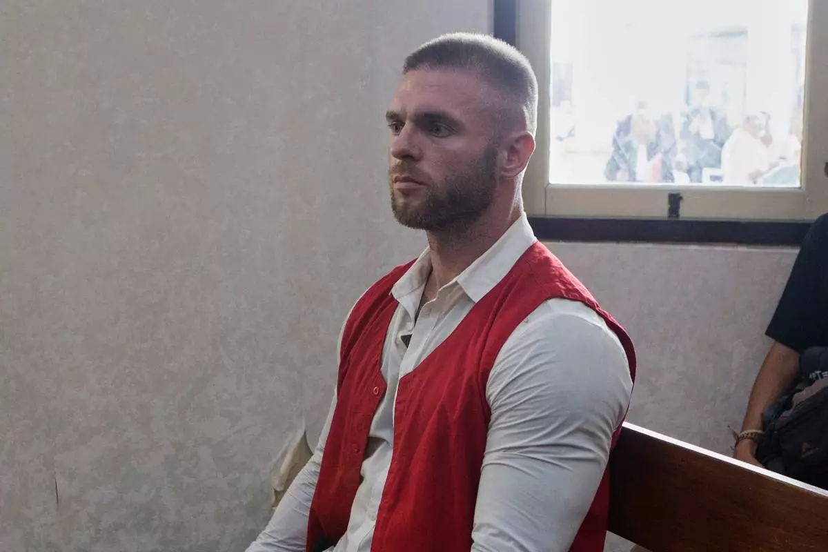 British citizen Thomas Parker sits on the defendant's chair before sentenced for drug offenses, at a district court in Denpasar in Bali, Indonesia on Tuesday, May 27, 2025. (AP Photo/Firdia Lisnawati)