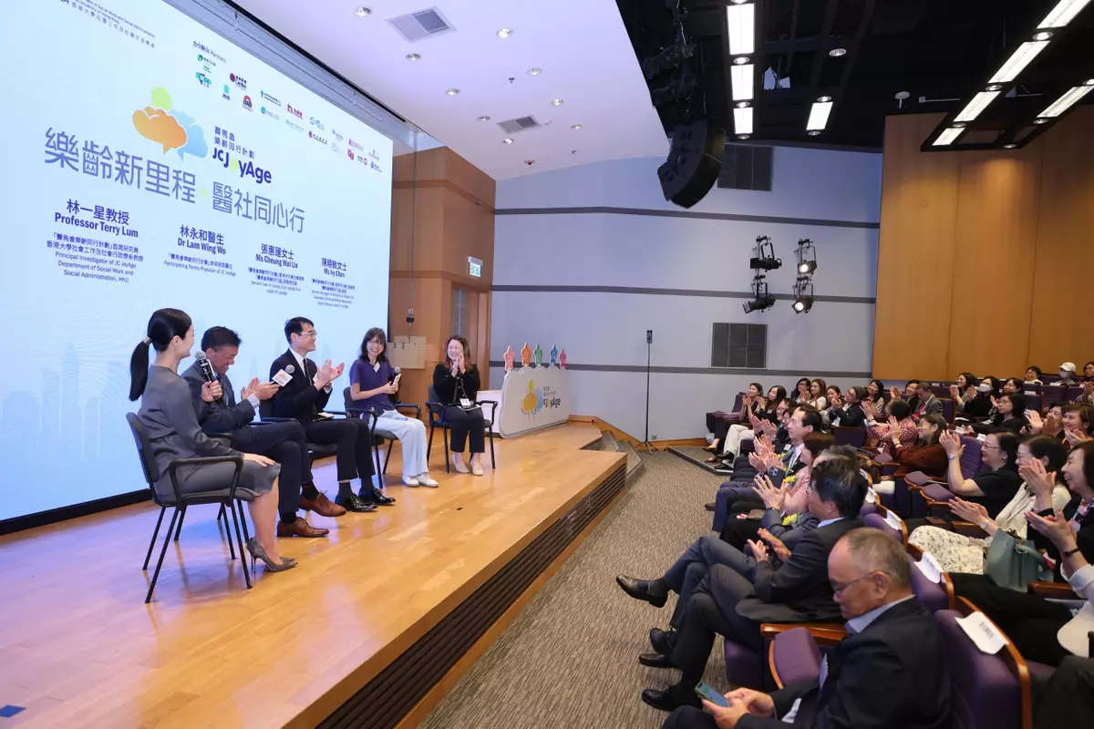 The announcement was made in a launch ceremony at The University of Hong Kong’s Rayson Huang Theatre today (27 May). Officiating guests included Club Steward Bernard Chan; Dr Libby Lee, Under Secretary for Health of the HKSAR Government; Professor Vivian Yam, Vice-President and Pro-Vice-Chancellor (Global Innovation Centre) (Interim) of The University of Hong Kong; Dr Lam Ching-choi, Chairman of the Advisory Committee on Mental Health; and Dr Donald Li, Chairman of the Elderly Commission and Convenor of the Advisory Committee of JC JoyAge.