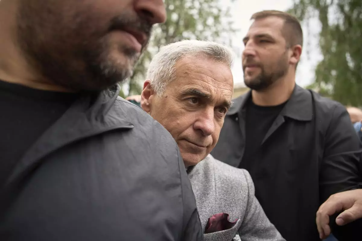 Calin Georgescu, the winner of the first round of last year's annulled election, leaves a prosecutor's office in Bucharest, Romania, Tuesday, May 27, 2025. (AP Photo/Vadim Ghirda)