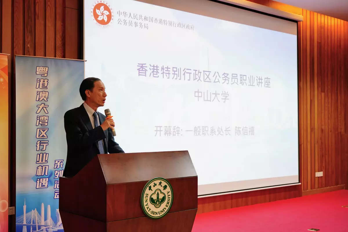 Speaking at the talk at Sun Yat-sen University today, the Director of General Grades of the CSB, Mr Hermes Chan, said that since 2023, the CSB of the HKSAR Government has been sending delegations to a number of universities and local offices of the HKSAR on the Mainland to introduce the diverse job opportunities offered by the HKSAR Government to Hong Kong students and Hong Kong people residing on the Mainland. In May last year, the CSB held career talks together with various departments for the first time at several universities in Guangdong and Fujian. The briefings are effective, as shown by the continuous increase in the number of applications for civil service positions from Hong Kong students graduating from Mainland universities. He encouraged Hong Kong students with aspirations to serve the community to equip themselves early to join the civil service.