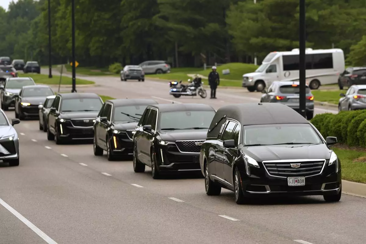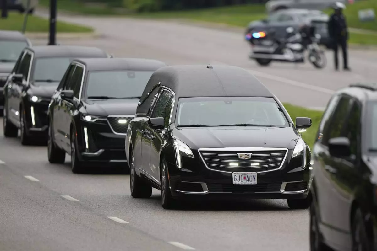 A funeral procession leaves Congregation Beth Torah after a funeral for Sarah Milgrim, a staffer at the Israeli Embassy who was killed last week outside a Washington Jewish museum, Tuesday, May 27, 2025, in Overland Park, Kan. (AP Photo/Charlie Riedel)