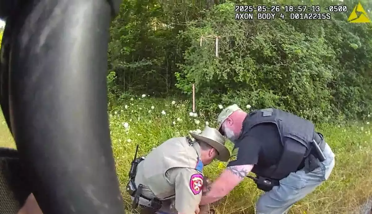Police dashboard and body camera footage, obtained by The Associated Press, appears to show two escapees — Leo Tate, 31, and Jermaine Donald, 42 — fleeing from police, reaching speeds up to 80 mph (129 kph), in a white SUV in Walker County, Texas.