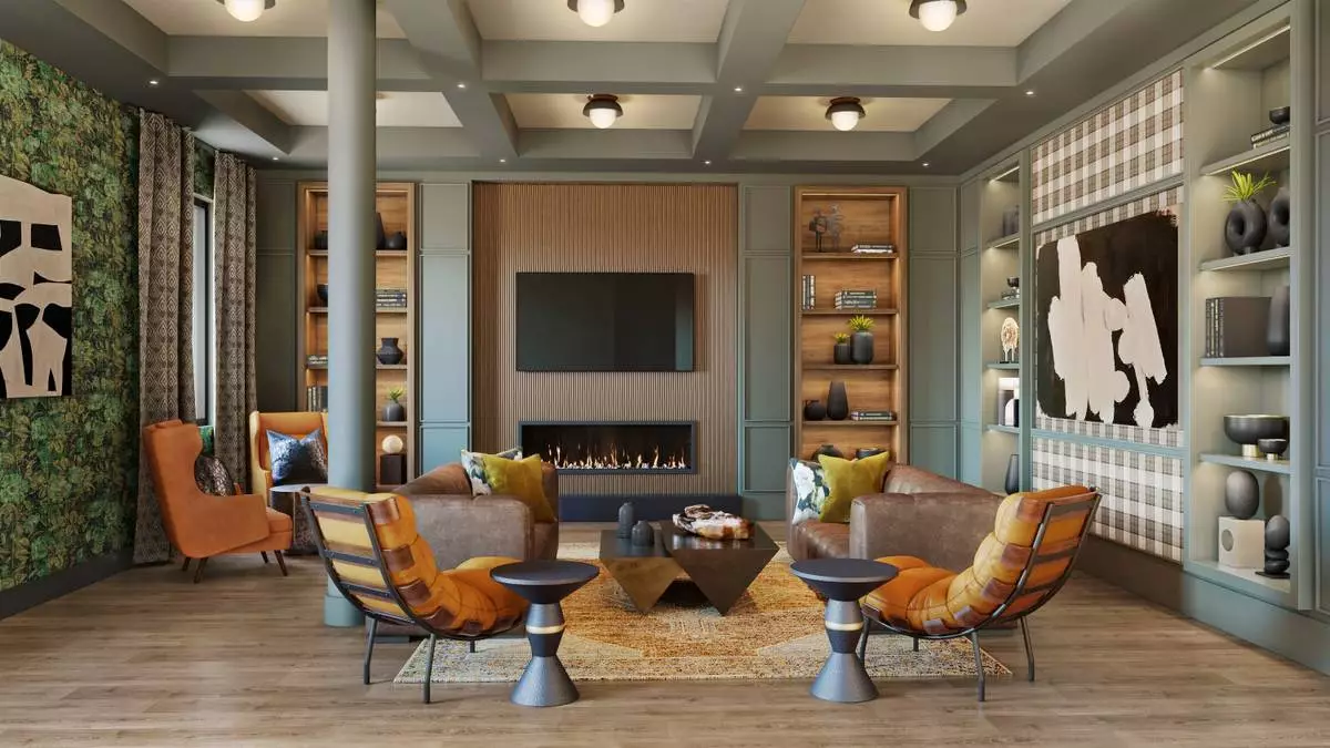 Residents of Taryn at 401 will enjoy a leading-edge fitness center with CrossFit and yoga studios, game room with billiards, a library with fireplace, lounge with entertainment kitchen, co-working space with focus rooms, and a pet spa with grooming stations.