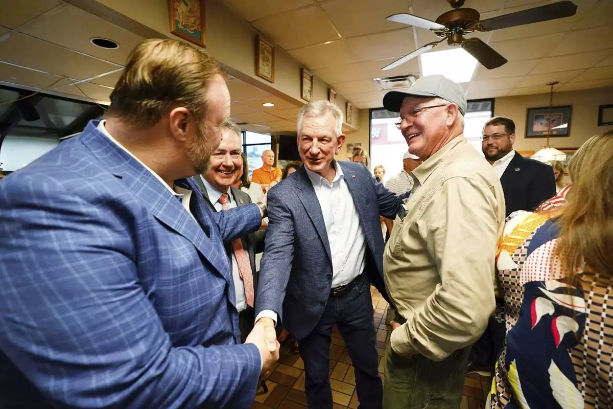 U.S. Sen. Tommy Tuberville, R-Ala., greets supporters following announcing his plans to run for the governor of Alabama in 2026, Tuesday May 27, 2025 at Byron's Smokehouse in Auburn, Ala. (AP Photo/ John David Mercer)