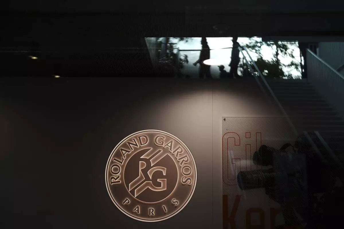 The Roland-Garros logo stands out on the occasion of the French Tennis Open, at the Roland-Garros stadium, in Paris, Wednesday, May 28, 2025. (AP Photo/Christophe Ena)