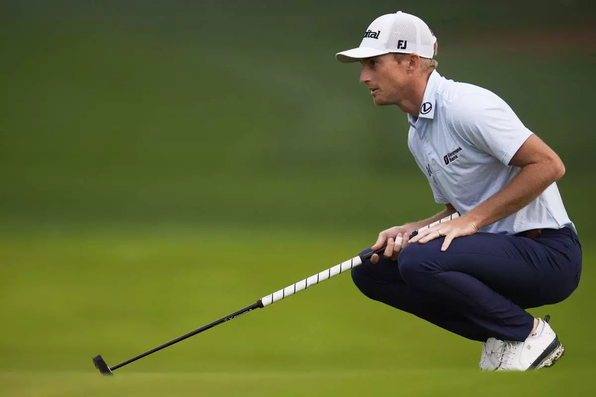 Will Zalatoris lines up a putt on the 10th hole during the second round of the PGA Championship golf tournament at the Quail Hollow Club, Friday, May 16, 2025, in Charlotte, N.C. (AP Photo/George Walker IV)