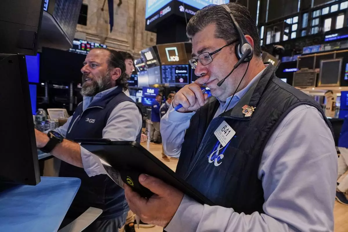 Specialist Anthony Matesic works on the floor of the New York Stock Exchange, Tuesday, May 27, 2025. (AP Photo/Richard Drew)