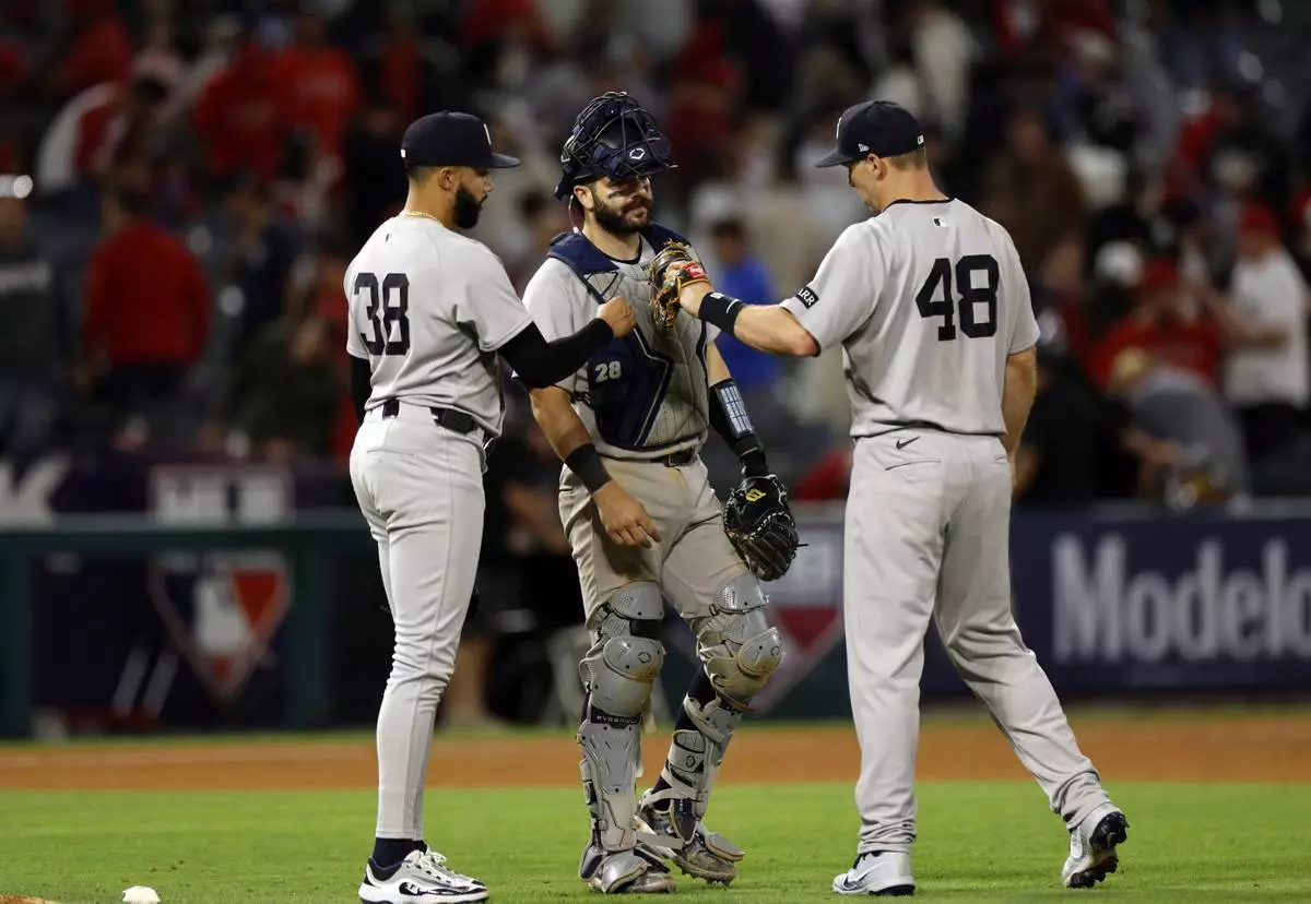 ANAHEIM, Calif. (AP) — Devin Williams' first two months with the New York Yankees have been a roller coaster ride, and his first save in nearly six weeks was full of even more thrills and chills.