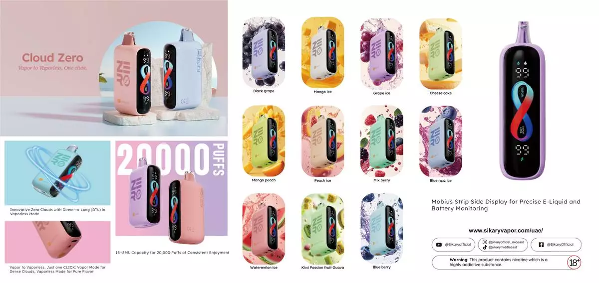 Leading global vapor brand Sikary has unveiled its latest device, the Cloud Zero 20000 puffs, at its first product launch event in Dubai, marking its official entry into the Middle East market. The launch introduces a groundbreaking dual-mode experience, captured in the slogan: “Vapor to Vaporless, One Click.” It also reflects Sikary’s commitment to localized engagement, leveraging product trials, on-site purchases, and organic user sharing to foster stronger consumer connections. At the core of this innovation is the industry’s first Vaporless Mode, which delivers zero visible emissions without compromising flavor or performance—setting a new standard for personal control and responsible use in both public and private environments.