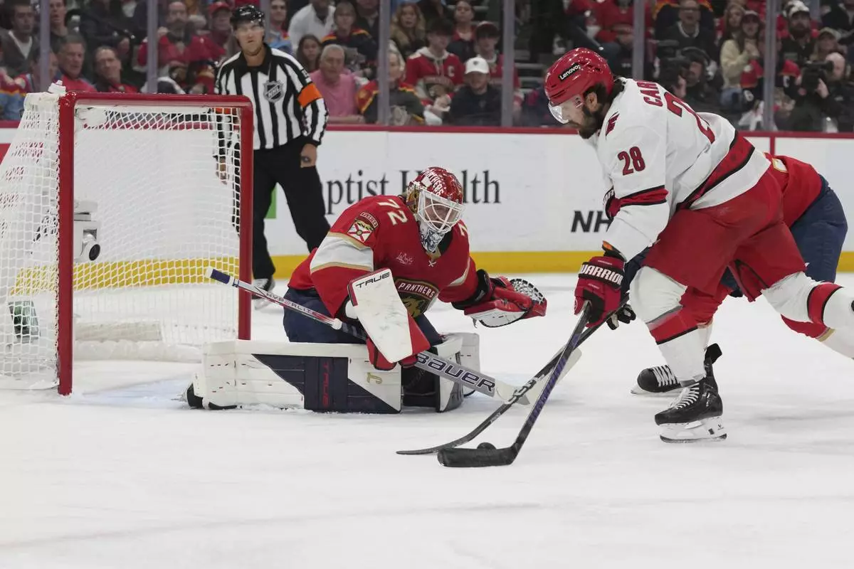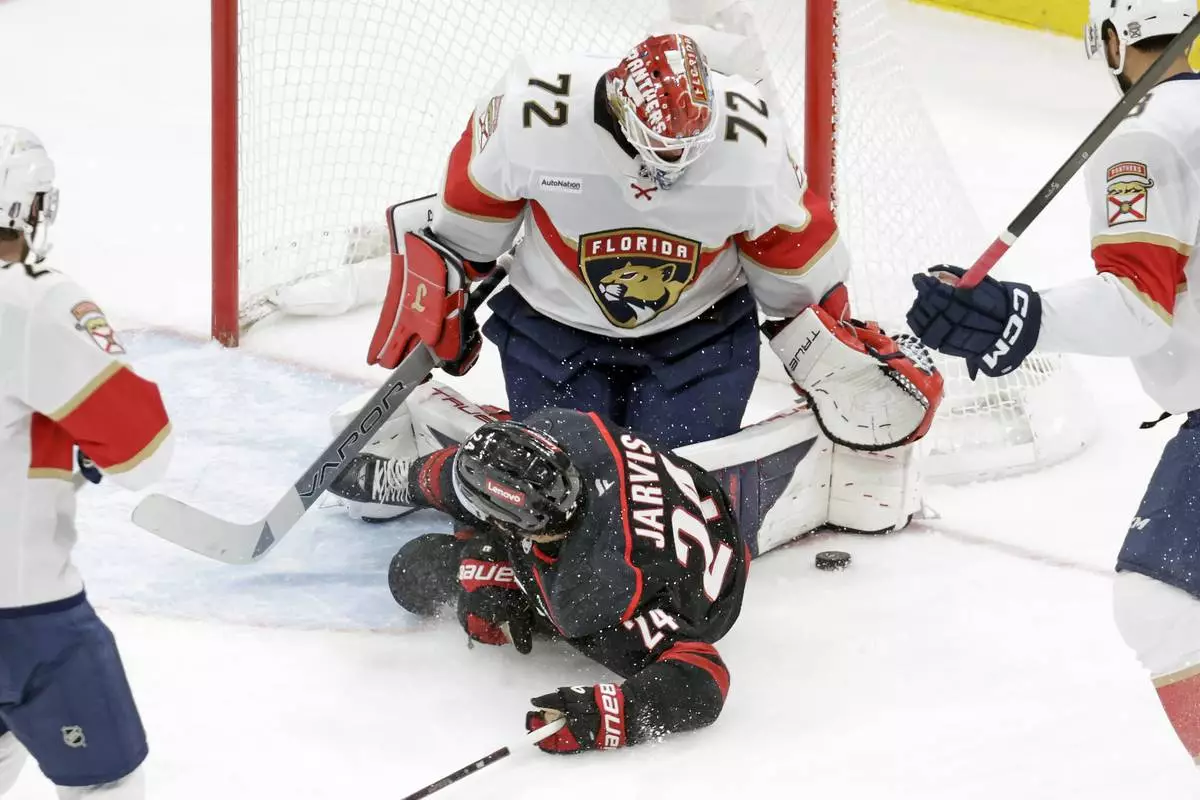 That capped a wild night that saw the Hurricanes jump to a 2-0 lead by capitalizing on giveaways, and Florida answer with three second-period goals, only to see Carolina's Seth Jarvis beat Bobrovsky midway through the third to tie it at 3.