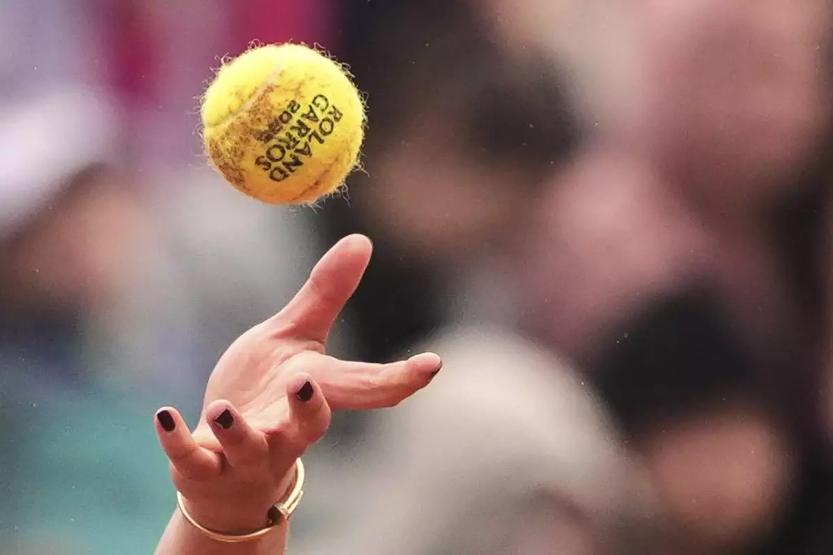A young fan throws back a ball that landed in the stands, during the second round match of the French Tennis Open between France's Giovanni Mpetshi Perricard and Bosnia and Herzegovina's Damir Dzumhur, at the Roland-Garros stadium, in Paris, Wednesday, May 28, 2025. (AP Photo/Lindsey Wasson)