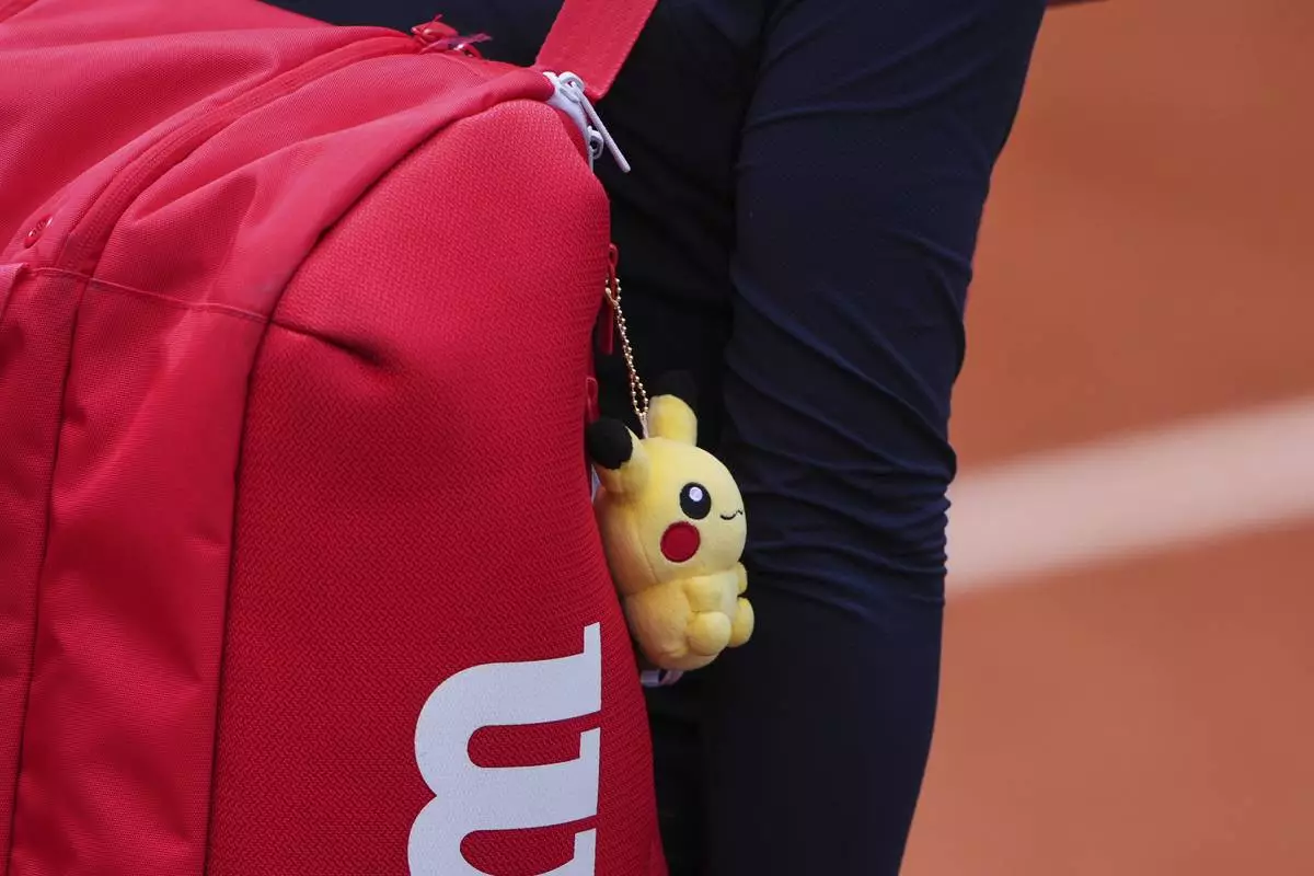 China's Guo Hanyu's carries her bag before playing Britain's Jodie Burrage and Sonny Kartal during their match of the French Tennis Open, at the Roland-Garros stadium, in Paris, Wednesday, May 28, 2025. (AP Photo/Lindsey Wasson)