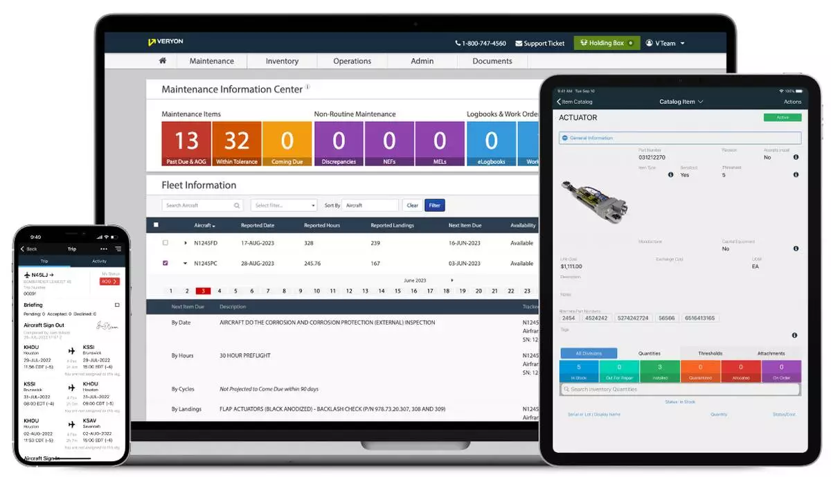 Veryon Tracking delivers integrated and optimized aircraft maintenance management software for real-time visibility into your data across departments.