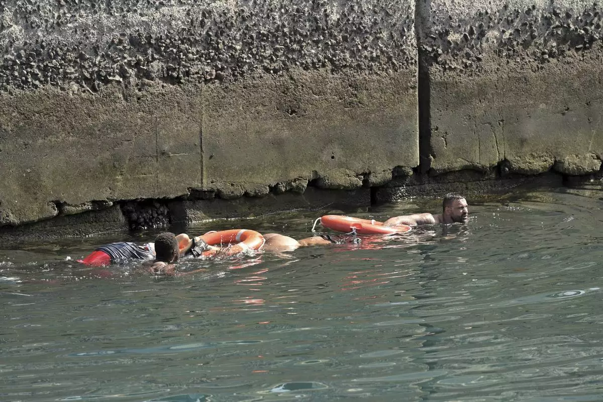 In the chaotic scene at El Hierro's port, survivors clung to ropes and life preservers tossed by rescuers.