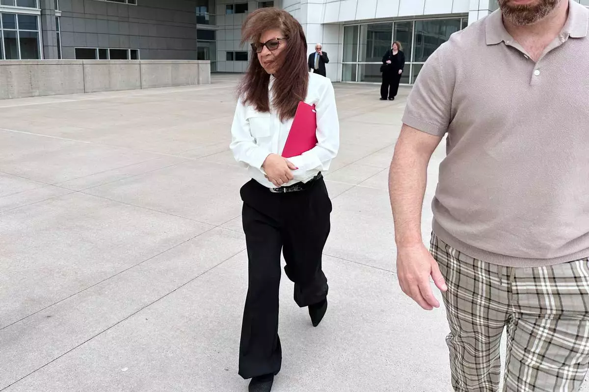 George Santos' former campaign treasurer, Nancy Marks, leaves federal court in Central Islip, N.Y., on Wednesday, May 28, 2025, after being sentenced to three years' probation for her role in fabricating campaign finance reports for the disgraced ex-congressman. (AP Photo/Philip Marcelo)