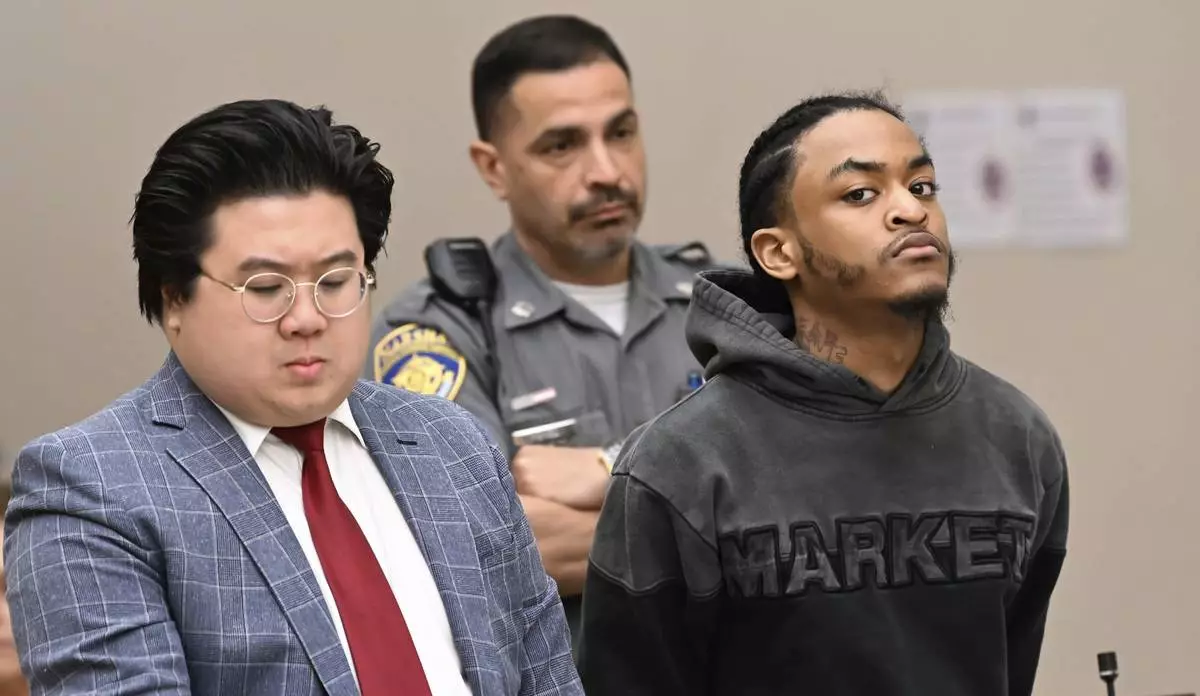 Suspect Tajuan Washington, with public defender Justin Chan, during his arraignment Wednesday May 28, 2025, in Waterbury Superior Court and has been charged with assault and weapons crimes in a shooting at the Brass Mill Center on Tuesday afternoon, May 27, in Waterbury, Conn. (Jim Shannon/Hearst Connecticut Media via AP)