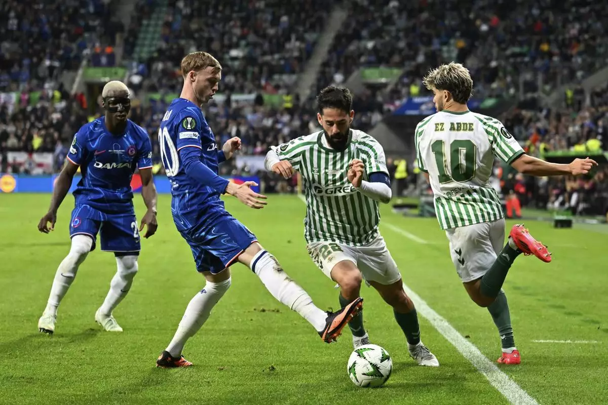 WROCLAW, Poland (AP) — Chelsea put four past Real Betis to win the Conference League final in Wroclaw, Poland. Betis got off to an early lead with a goal from Abde Ezzalzouli, but Chelsea proved too much to handle, notching four second-half goals, from Enzo Fernandez, Nicolas Jackson, Jadon Sancho and Moises Caicedo.