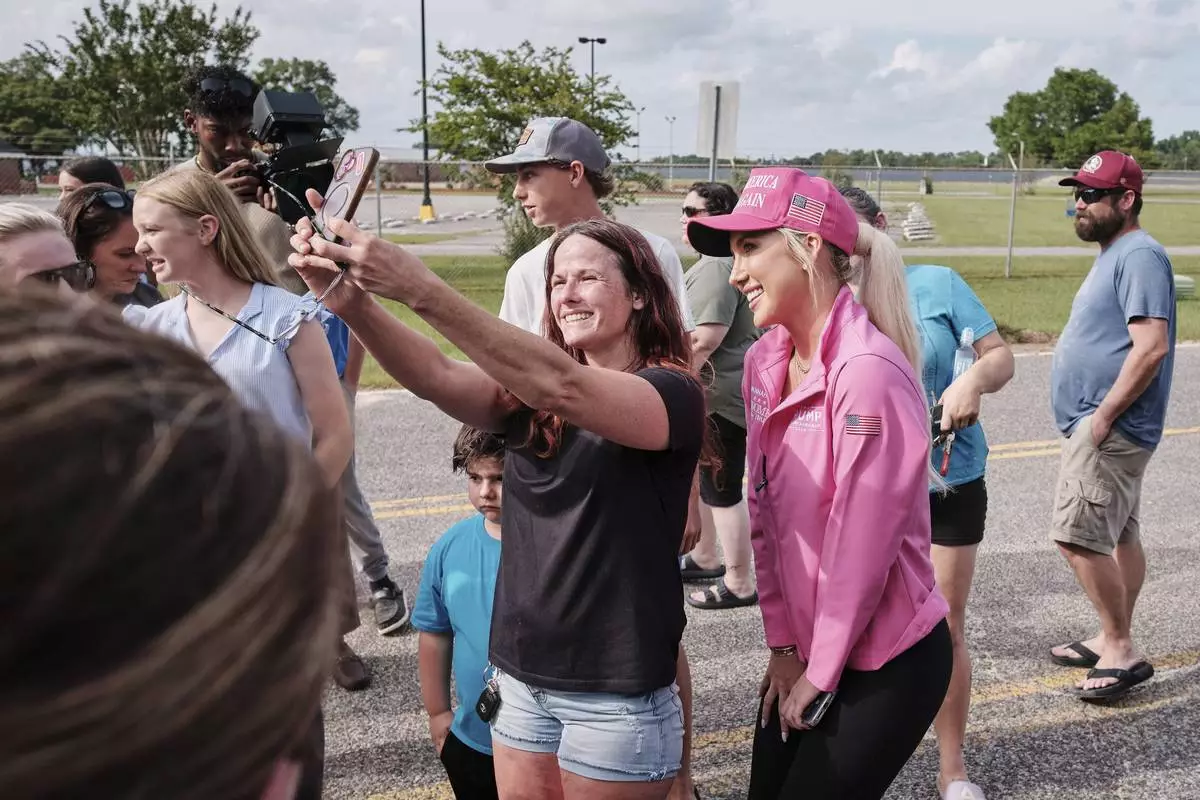 A fan takes a photo with Savannah Chrisley, daughter of reality television star Todd Chrisley, after she spoke outside the Federal Prison Camp, Wednesday, May 28, 2025, in Pensacola, Fla. (AP Photo/Dan Anderson)