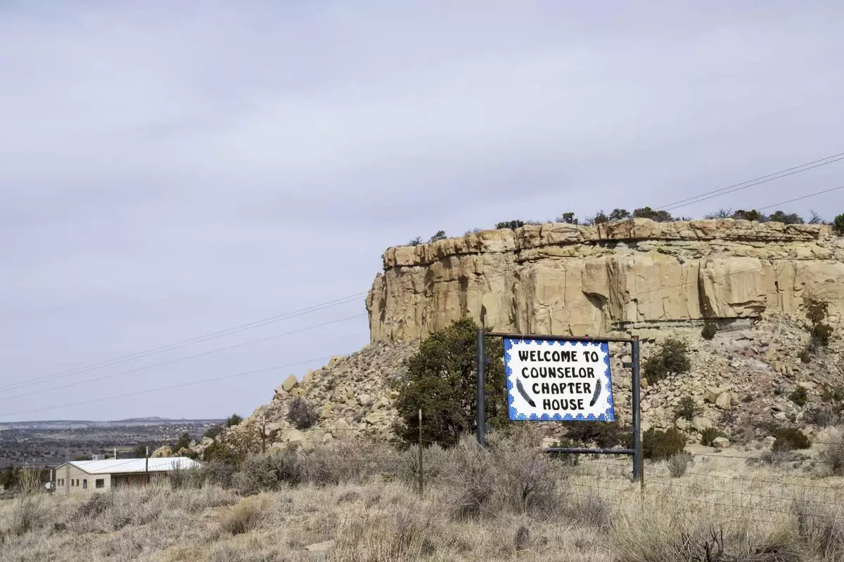 A welcome sign is posted at an entrance to Counselor, N.M., Navajo Nation, on Tuesday, March 11, 2025, that sits in the San Juan Basin, a major oil and gas deposit that, along with the Permian Basin in the state's southeast, is supplying natural gas to the rest of the U.S. (Nadav Soroker/Searchlight New Mexico via AP)