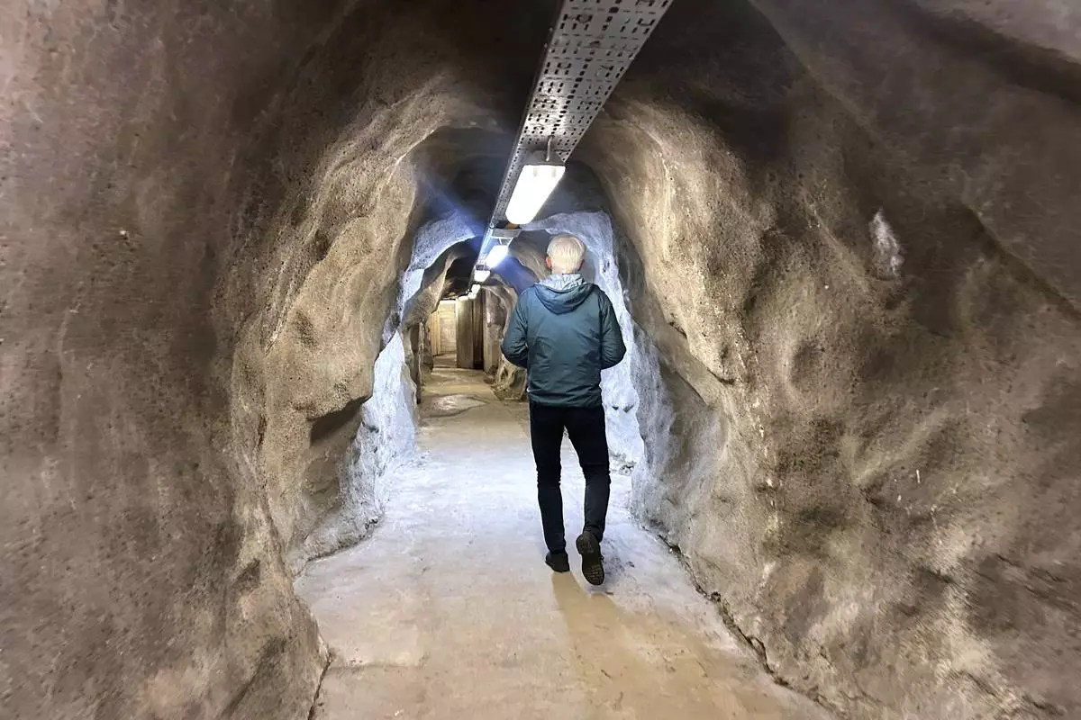 Odd John Resser, Emergency Planning Officer for the municipality, walks in the tunnel of a Cold War era underground shelter which was dusted off after Russia's invasion of Ukraine, in Kongsberg, Norway Thursday, May 8, 2025. (AP Photo/Emma Burrows)