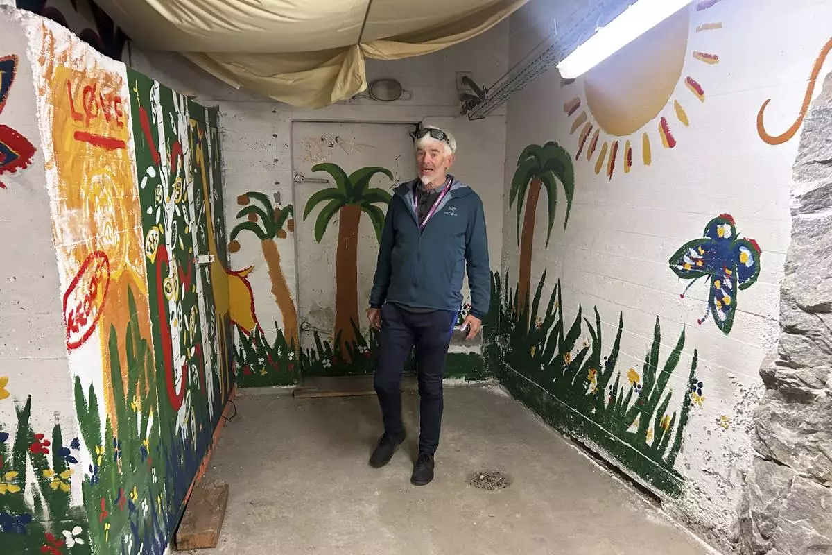 Odd John Resser, Emergency Planning Officer for the municipality, walks in an underground shelter which was previously used by a youth club, in Kongsberg, Norway Thursday, May 8, 2025. (AP Photo/Emma Burrows)