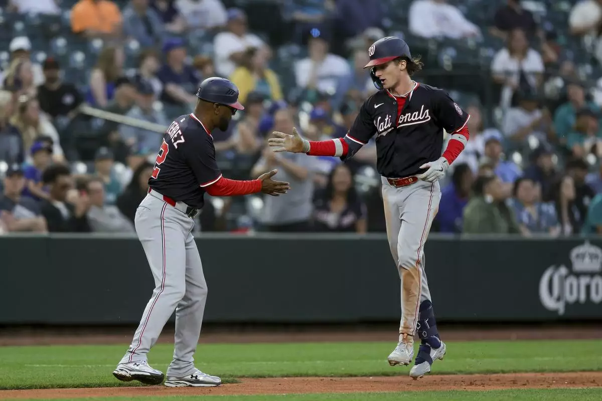 SEATTLE (AP) — Robert Hassell III had three hits and two RBIs, including his first major league home run, and James Wood also went deep as the Washington Nationals routed the Seattle Mariners 9-0 on Wednesday night.