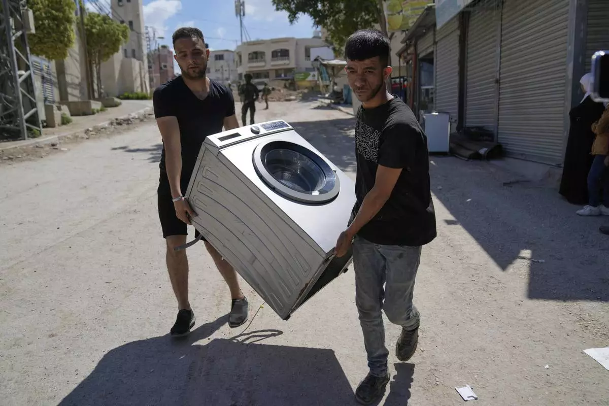 Residents of the now evacuated Palestinian refugee camp of Tulkarem return to collect belongings before the destruction of their homes as Israeli forces prepared to carry out the demolition of homes across the two refugee camps of the Israeli occupied West Bank city of Tulkarem, Thursday, May 29, 2025. (AP Photo/Nasser Nasser)