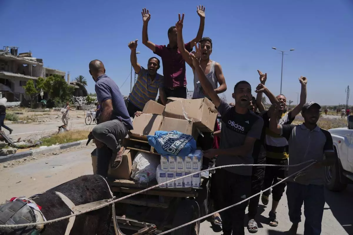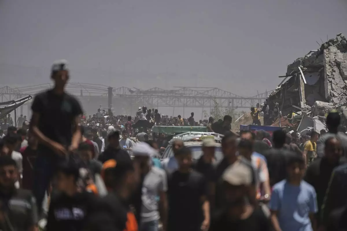 At one of the Rafah sites near the Morag Corridor, another Israeli-held strip, one man told the AP he and his cousin arrived at 5:30 a.m., and found thousands of people massed outside, waiting to be let in. When it was opened, the crowd flowed into an outdoor area ringed by barbed wire and earth berms, where pallets of food boxes had been left.