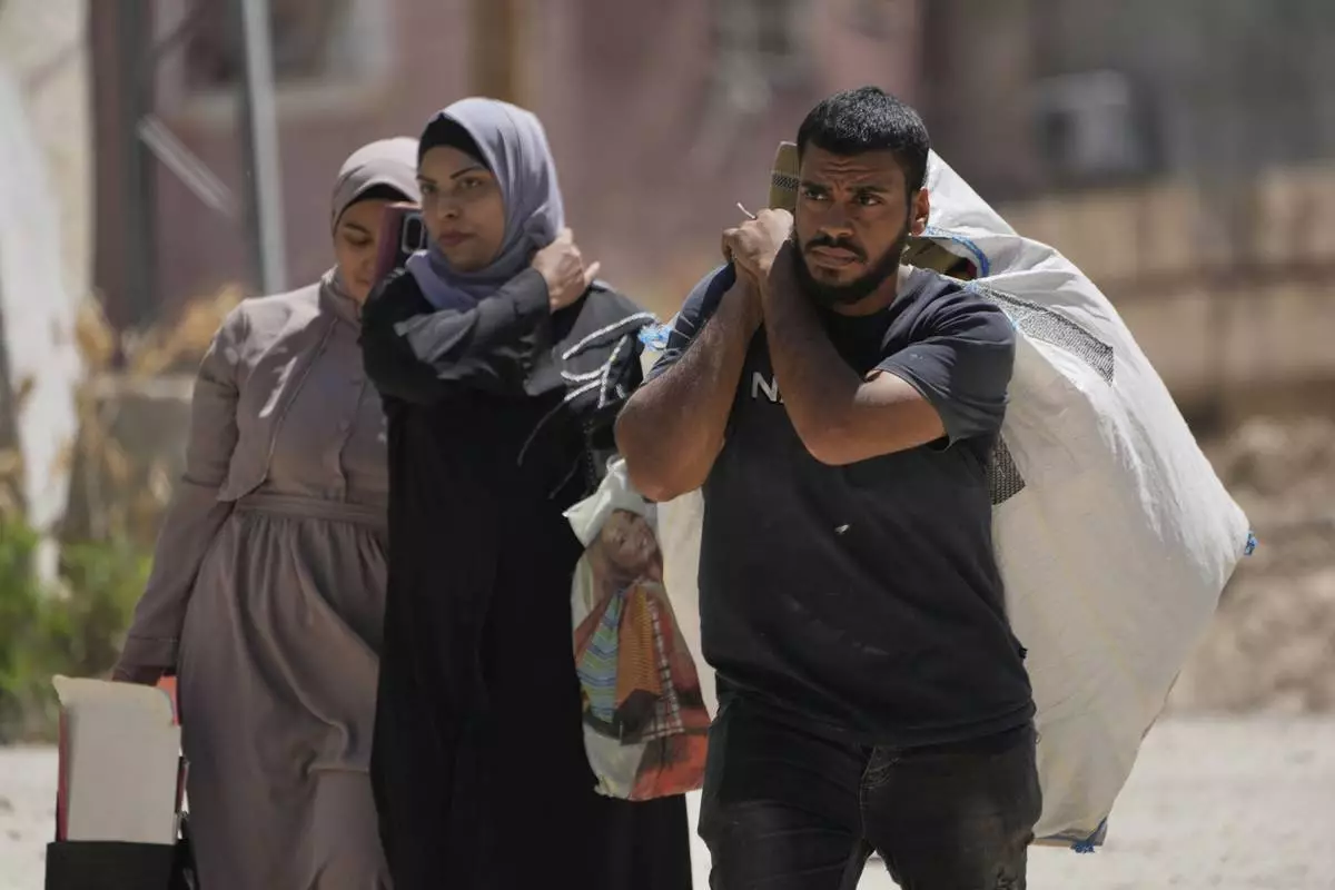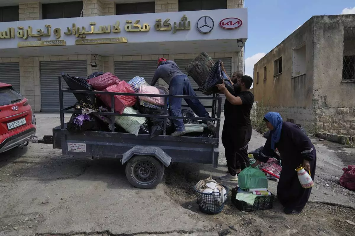 Residents of the now evacuated Palestinian refugee camp of Tulkarem who return to collect belongings before the destruction of their homes as Israeli forces prepared to carry out the demolition of homes across the two refugee camps of the Israeli occupied West Bank city of Tulkarem, Thursday, May 29, 2025. (AP Photo/Nasser Nasser)