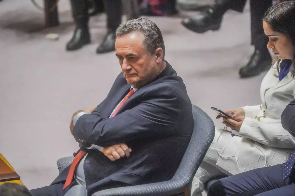 FILE - Israel's Foreign Affairs Minister Israel Katz listens during a meeting of the United Nations Security Council on the war in Gaza, March 11, 2024, at U.N. headquarters. (AP Photo/Bebeto Matthews, File)