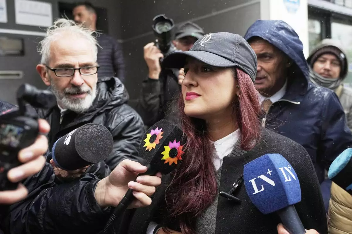 Jana Maradona, daughter of the late soccer star Diego Maradona, arrives at court for a hearing in the trial of health professionals accused of negligence in his death, in San Isidro on the outskirts of Buenos Aires, Argentina, Tuesday, May 27, 2025. (AP Photo/Gustavo Garello)