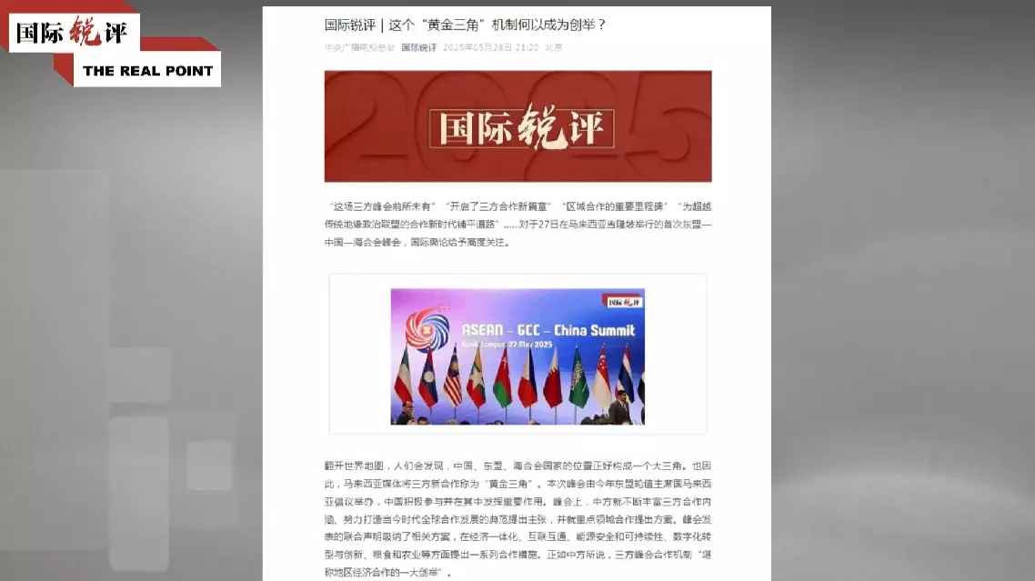 Xu Liping, researcher at the National Institute of International Strategy of the Chinese Academy of Social Sciences pointed out that from a regional perspective, the ASEAN-GCC-China Summit spans three major areas -- East Asia, Southeast Asia, and the Middle East -- and such cross-regional cooperation is rare in Asia. From an institutional viewpoint, compared with previous bilateral summits such as the China-ASEAN Summit and the China-GCC Summit, the trilateral summit introduces innovations in its structural design. As high-quality Belt and Road cooperation continues to advance, this trilateral cooperation mechanism is poised to become a vital new platform, setting a benchmark for mutual respect and win-win cooperation among emerging economies, and playing a demonstrative and leading role.
