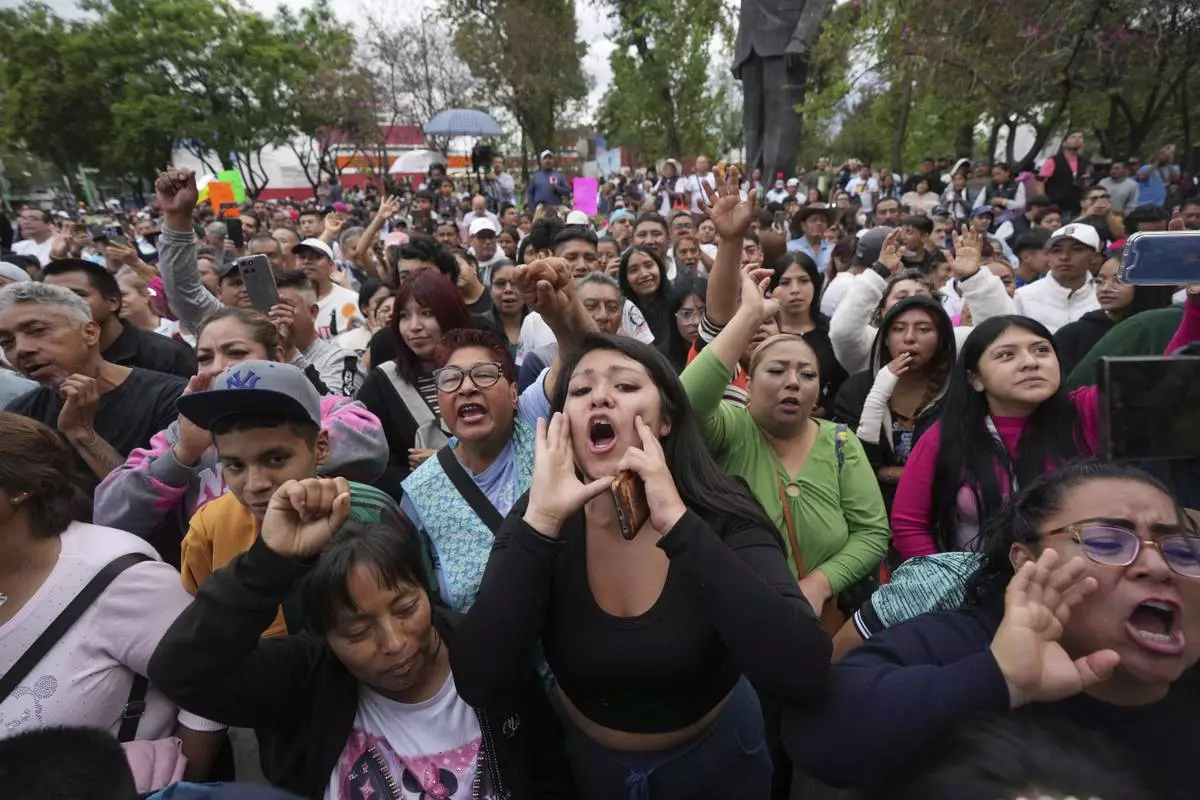 Supporters of Lenia Batres, who is running for election for the Mexican Supreme Court, cheer her on during her closing campaign rally in Mexico City, Wednesday, May 28, 2025. (AP Photo/Fernando Llano)