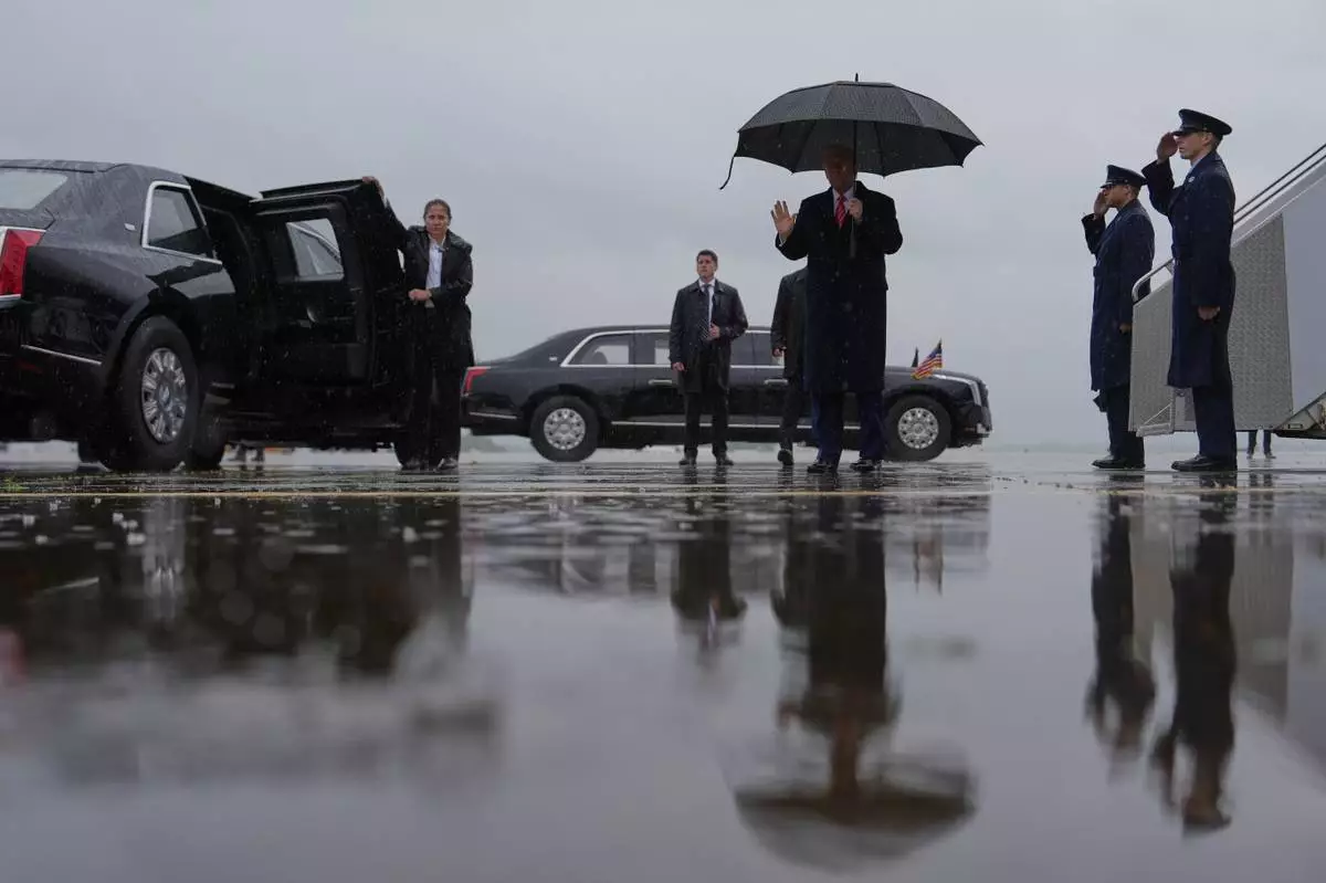 President Donald Trump arrives on Air Force One at Allegheny County Airport, Friday, May 30, 2025, in West Mifflin, Pa. (AP Photo/Julia Demaree Nikhinson)