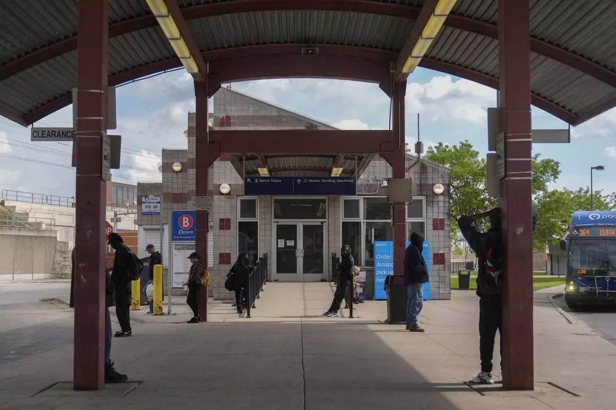 People wait at the Pace Harvey Transportation Center, Thursday, May 29, 2025, in Harvey, Ill. (AP Photo/Erin Hooley)