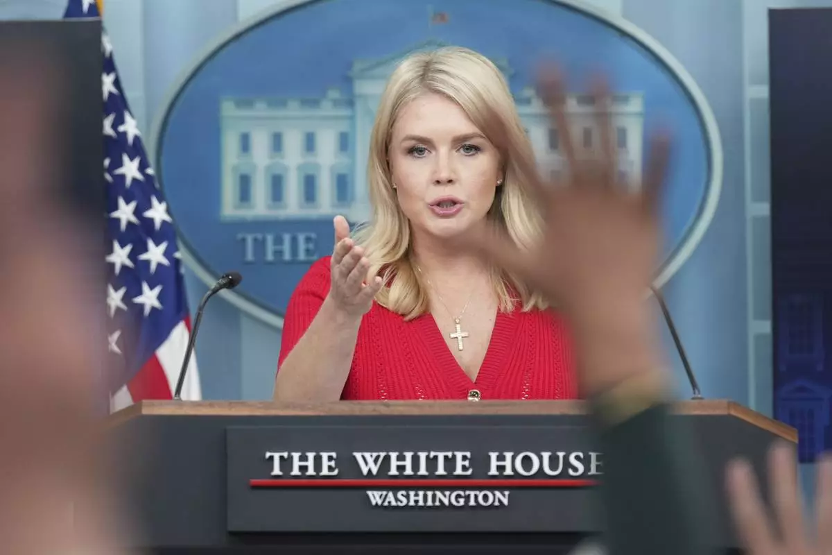 White House press secretary Karoline Leavitt speaks with reporters in the James Brady Press Briefing Room at the White House, Thursday, May 29, 2025, in Washington. (AP Photo/Jacquelyn Martin)