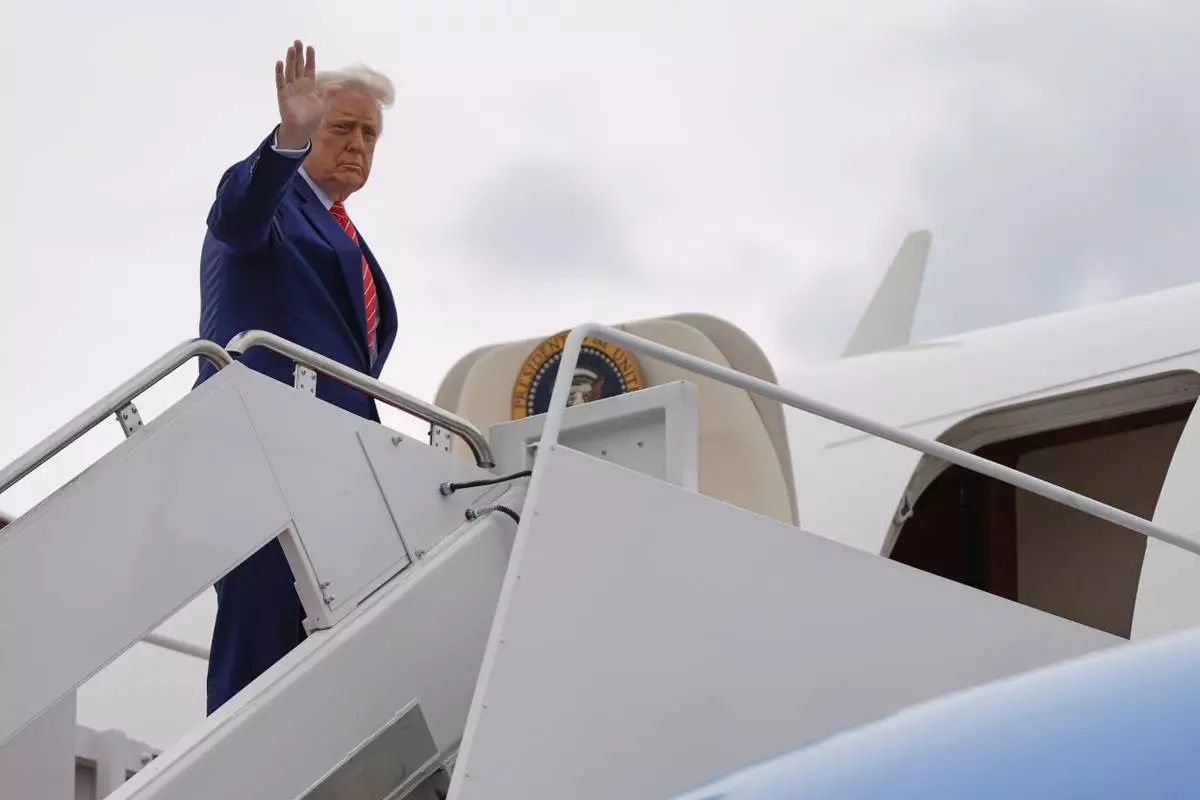 The president disembarked Air Force One under a large umbrella and waved to reporters but did not offer any comments before climbing into his motorcade.