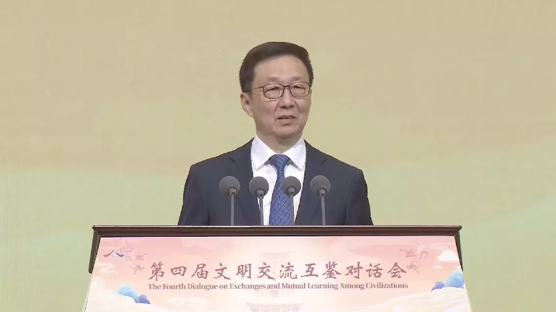 In a speech at the opening ceremony of the Fourth Dialogue on Exchanges and Mutual Learning Among Civilizations in Dunhuang City, northwest China's Gansu Province, Han said in today's world where the futures of all countries are closely linked, exchanges and mutual learning among civilizations will contribute to human progress and global prosperity and development.